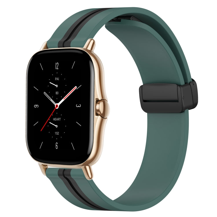 Correa de Reloj Amazfit GTS 2 20mm Silicona Cierre Magnético Plegable (Verde Oliva + Negro)