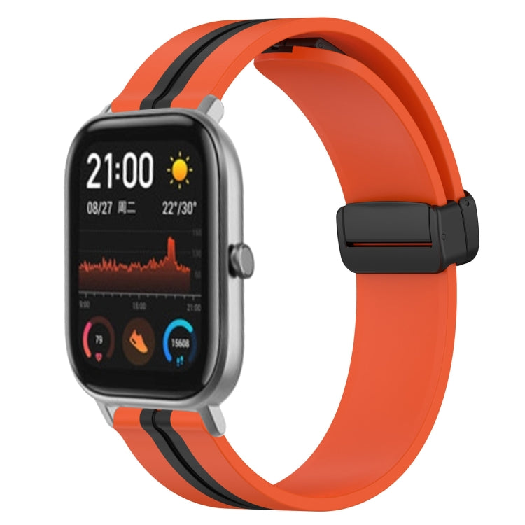 Correa de Reloj para Amazfit GTS 2 20mm Silicona con Cierre Magnético Plegable (Naranja + Negro)