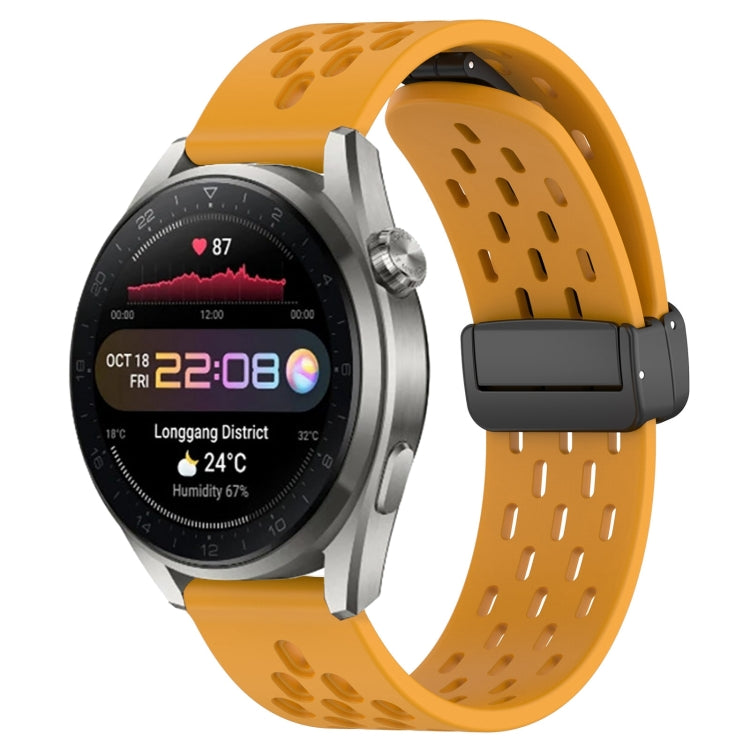 Correa de Silicona para Huawei Watch GT Runner con Cierre Magnético Plegable de 22mm (Amarillo)