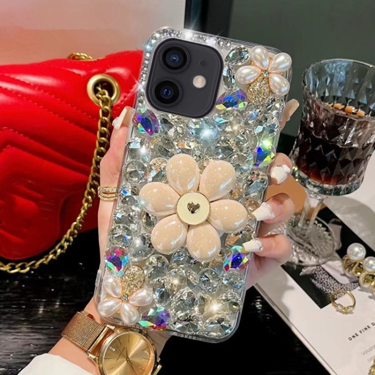 Funda para Teléfono iPhone 11 con Soporte de Girasol y PC con Diamantes Colocados a Mano (Blanco)