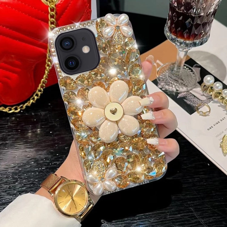 Funda para Teléfono iPhone 11 con Soporte de Girasol y PC con Diamantes Colocados a Mano (Dorado)