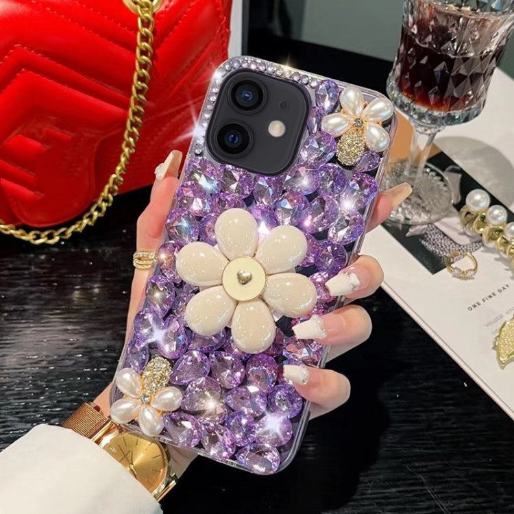 Funda para Teléfono iPhone 11 con Soporte Girasol y PC Diamantes Colocados a Mano (Púrpura)