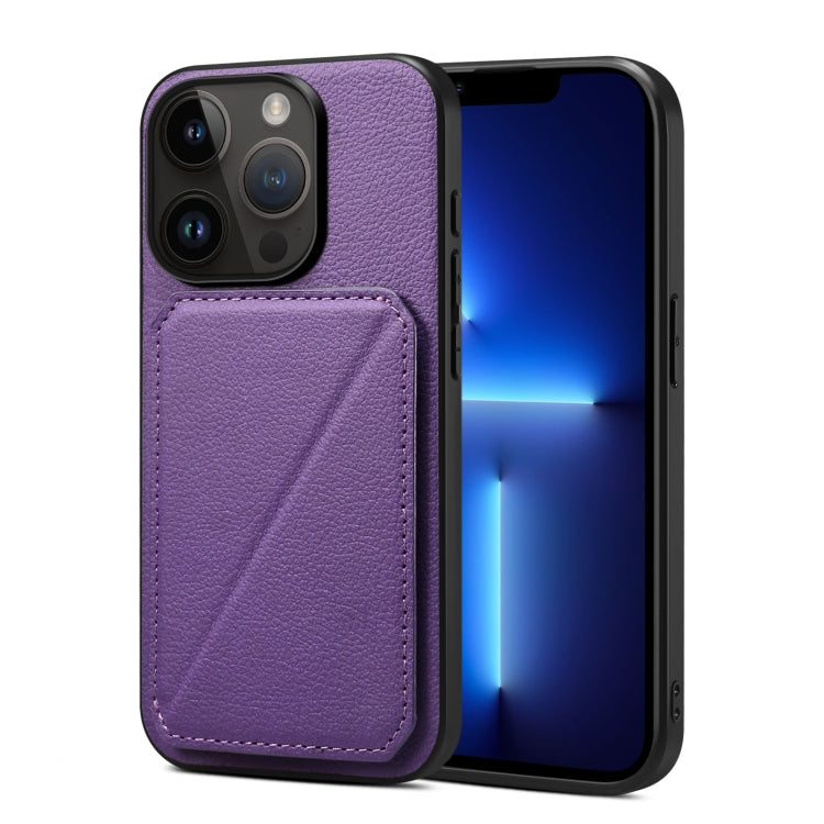 Funda Trasera para iPhone 13 Pro Piel de Becerro de Imitación con Soporte (Púrpura)