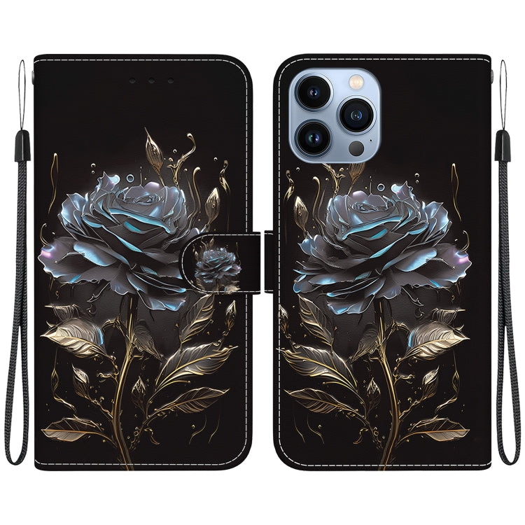 Funda para Teléfono iPhone 13 Pro Cuero Dibujo Coloreado Textura de Cristal (Rosa Negra)