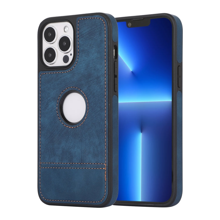Funda para iPhone 13 Pro Empalme Costura Caja de Teléfono de PU con Recorte Hueco (Azul)