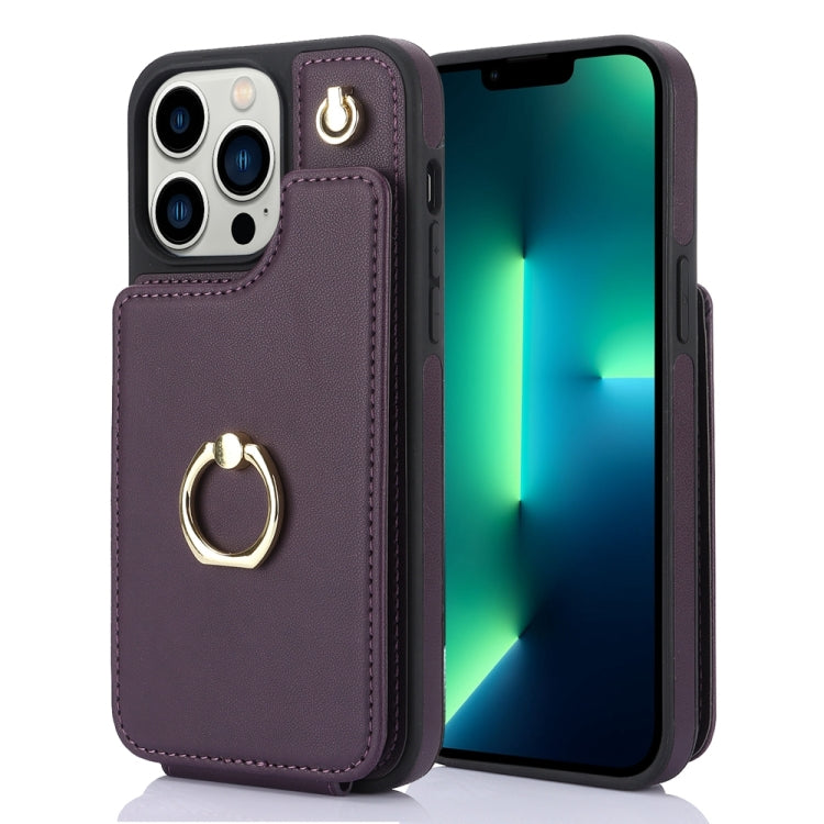 Funda para Teléfono Ym005 Skin Feel Card Bag para iPhone 13 Pro con Cordón Largo (Púrpura Oscuro)