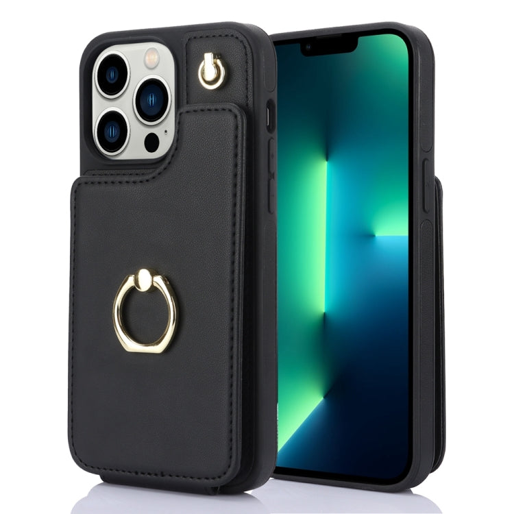 Estuche para Teléfono Ym006 para iPhone 13 Pro con Soporte para Anillo y Tarjeta (Negro)