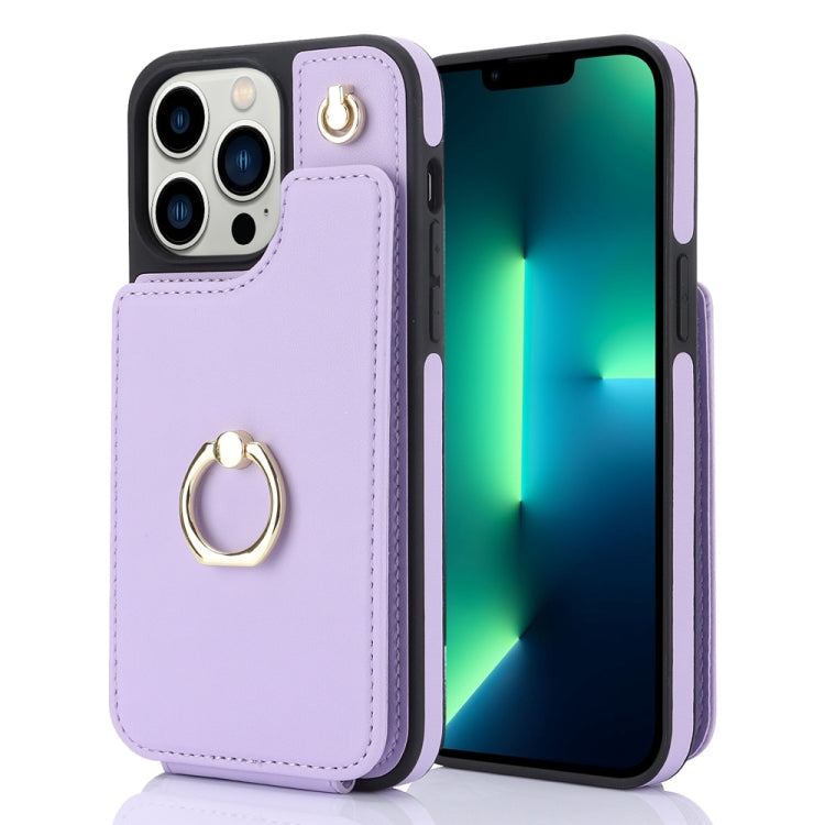 Funda para Teléfono Ym005 Skin Feel Card Bag para iPhone 13 Pro con Cordón Largo (Púrpura Claro)