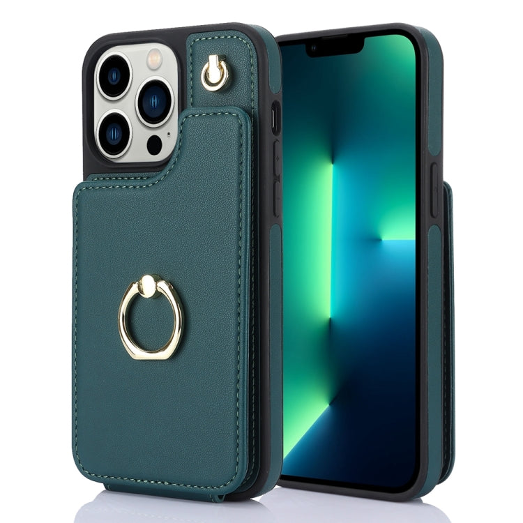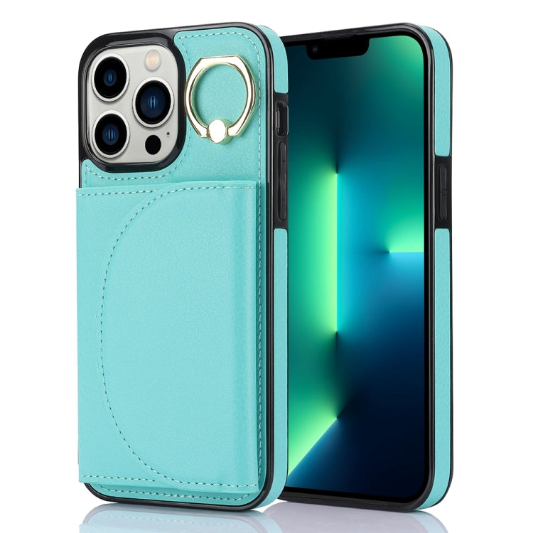 Estuche para Teléfono iPhone 13 Pro Ym006 Soporte Anillo Tarjeta Sensación de Piel (Verde)