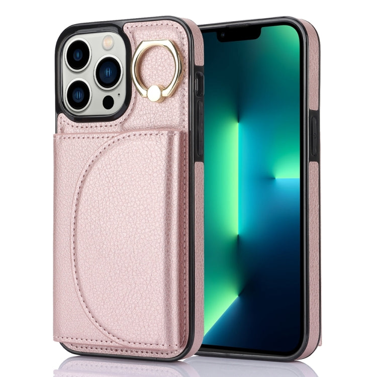 Estuche para Teléfono Ym006 para iPhone 13 Pro con Soporte para Anillo y Tarjeta (Oro Rosa)