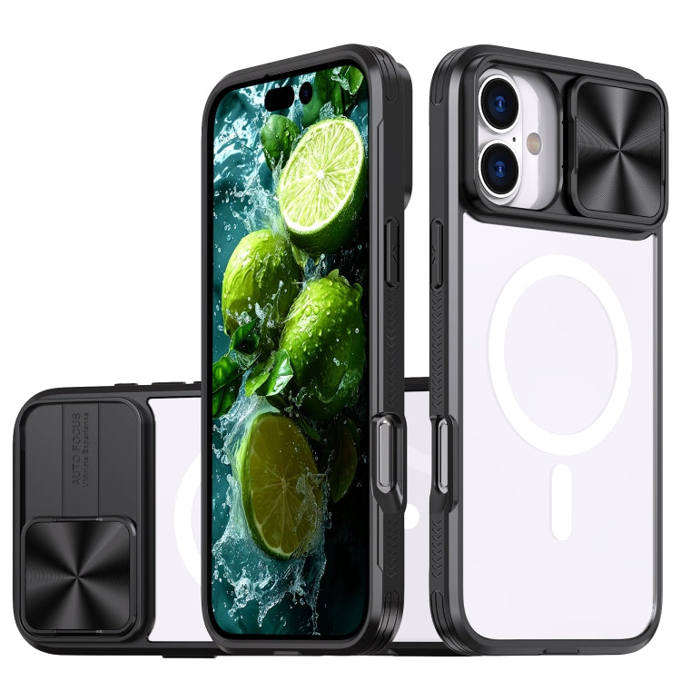 Funda para iPhone 16 Plus Cubierta Deslizante Acrílico Transparente PC TPU Magsafe (Negra)