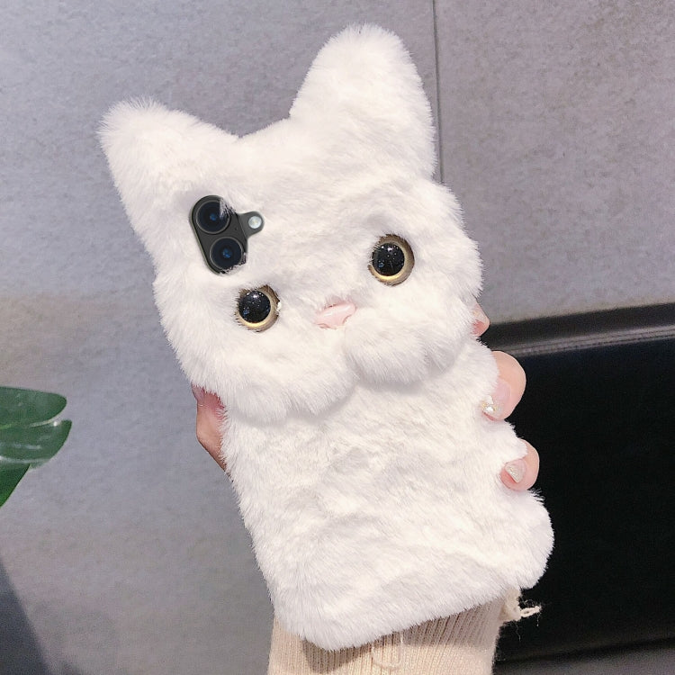 Funda para iPhone 16 Diseño Gato de Peluche 3D Cobertura Total (Blanca)