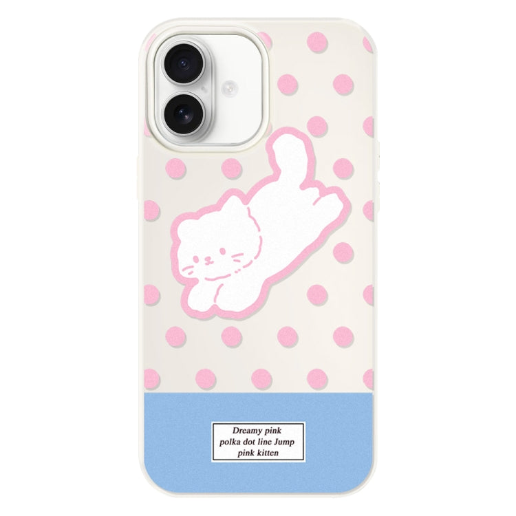 Funda Híbrida TPU y Policarbonato para iPhone 16 Plus (Gatito con Lunares en Blanco)