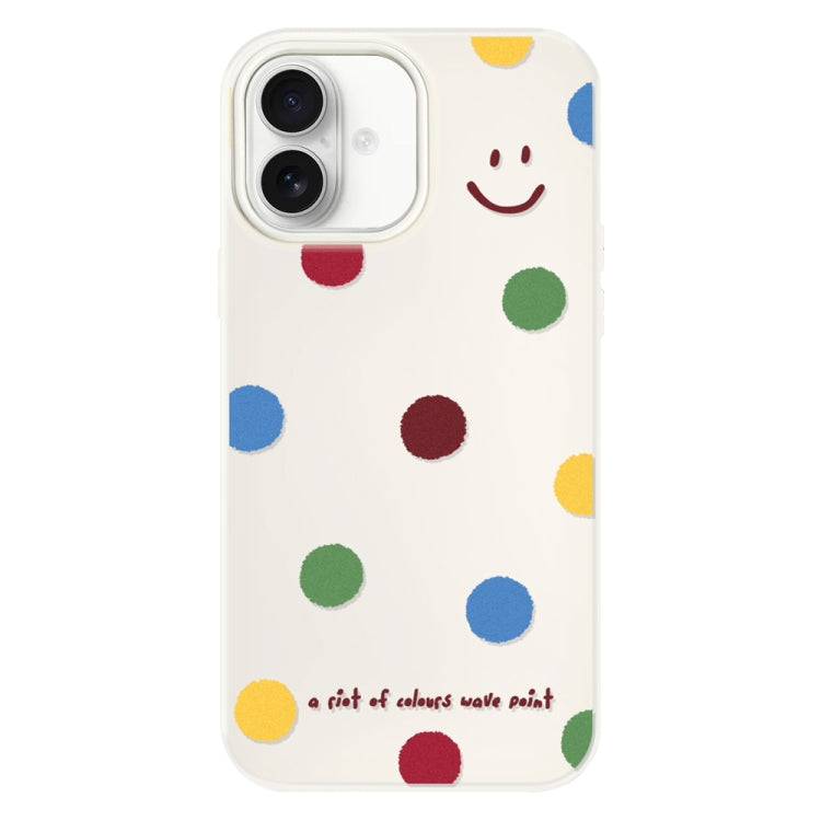 Funda híbrida TPU Policarbonato iPhone 16 Plus Tacto Sedoso (Sonrisa de Lunares En Blanco)