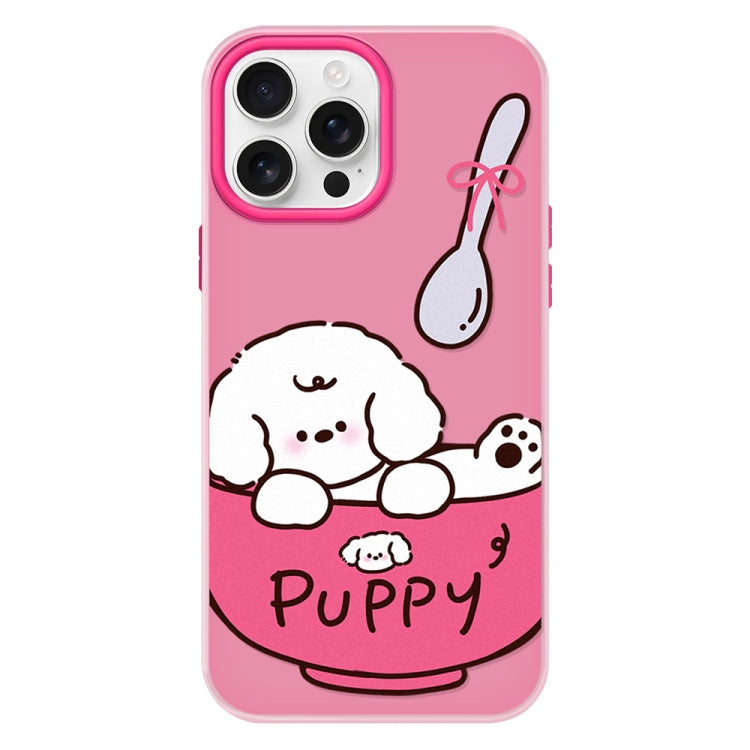 Funda híbrida TPU Policarbonato iPhone 16 Pro Max Cachorro en forma de taza de té (Amarillo)