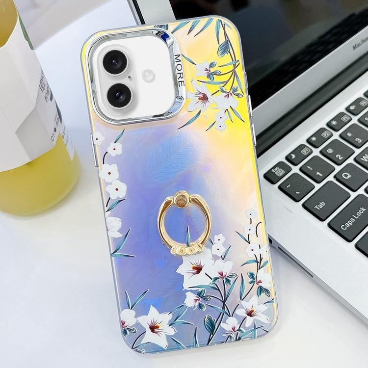 Funda TPU con Soporte Anillo Flores Láser Galvanizado para iPhone 16 (Morning Glory)