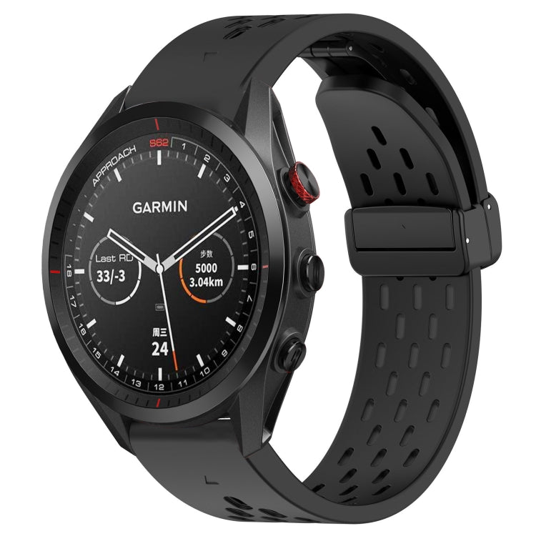Correa de Reloj de Silicona para Garmin Approach S62 con Orificio y Hebilla Plegable 22mm (Negro)