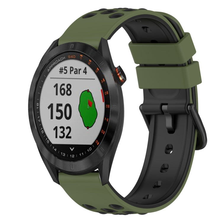 Correa de Reloj Garmin Approach S40 20mm silicona porosa dos colores (Verde Militar + Negro)
