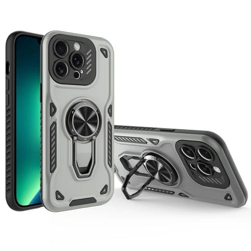 Funda para Teléfono iPhone 13 Pro Max TPU + PC Soporte Giratorio Metal (Gris)