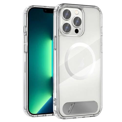 Funda híbrida TPU y PC Transparente Magsafe para iPhone 13 Pro Max con Soporte (Morado)