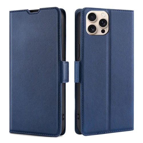 Funda de Cuero con Tapa Horizontal y Hebilla Lateral Ultrafina para iPhone 16 Pro (Azul)