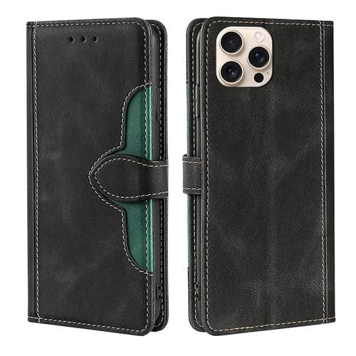 Funda de Cuero para iPhone 16 Pro con Hebilla Magnética y Tacto Agradable (Negra)