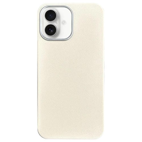 Funda para iPhone 16 con Marco para Cámara y Borde Plateado con Patrón de Lichi (Blanca)