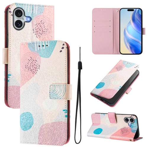 Funda de Cuero para iPhone 16 Diseño de Dibujo Artístico Mármol Colorido