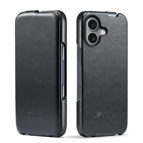 Funda de Piel Sintética Fierre Shann 64 para iPhone 16 con Tapa Vertical (Negra)