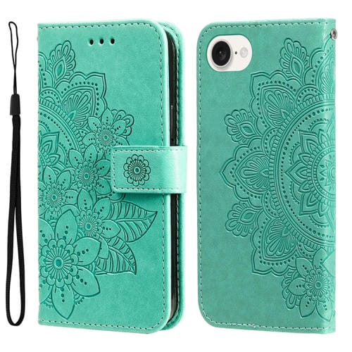 Funda para Teléfono iPhone SE 2022 Cuero Estampado Flores 7 Pétalos (Verde)