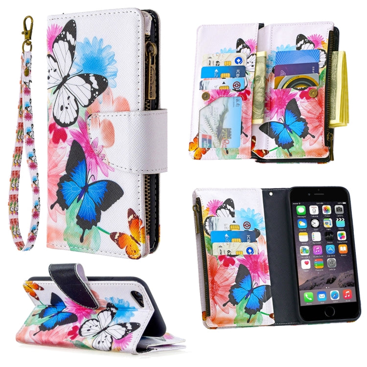 Funda de Cuero iPhone 6S y 6 con Tapa Horizontal Soporte Ranuras Tarjetas Billetera (Dos Mariposas)