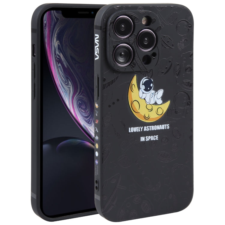 Funda de teléfono para iPhone Xs Max Patrón de Astronauta Borde Recto Silicona (Negro)