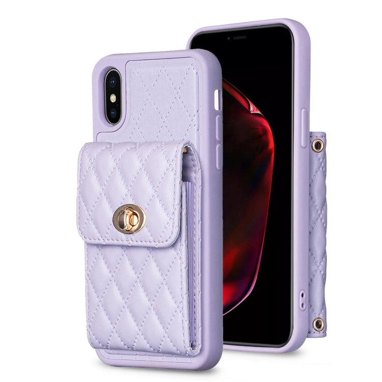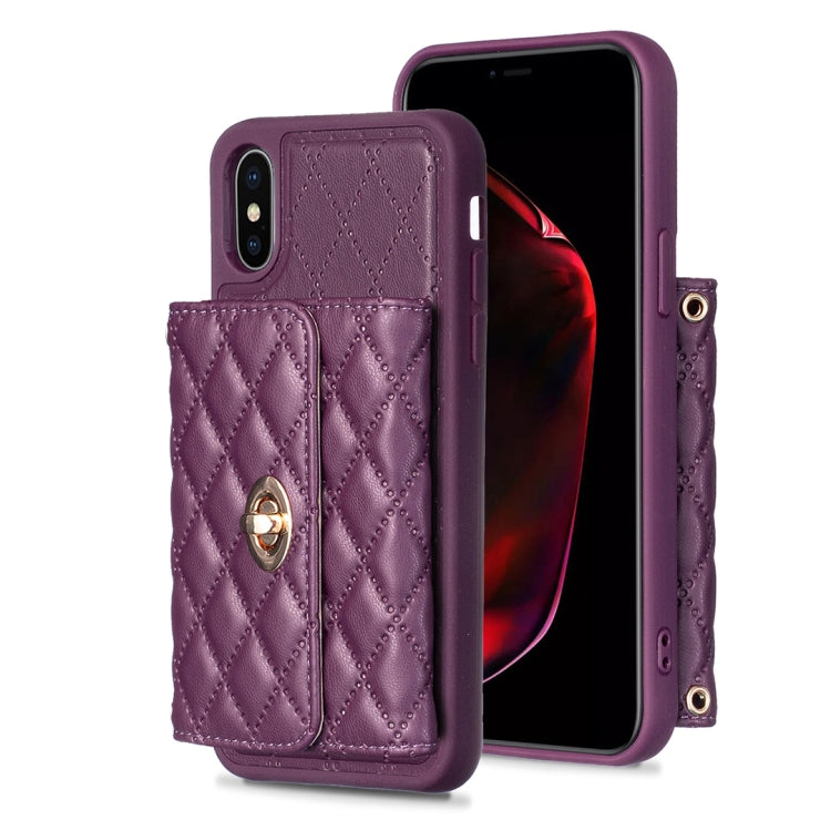Caja de Teléfono de Cuero Rombal para iPhone X / Xs con Hebilla de Metal Horizontal (Púrpura)