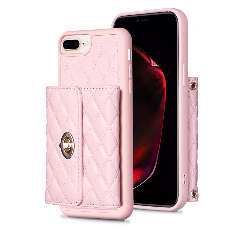 Caja de teléfono de cuero Rombal para iPhone 8 Plus y 7 Plus con hebilla de metal horizontal (Rosa)