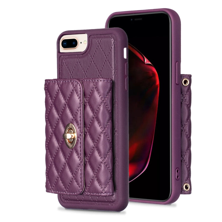 Estuche de teléfono iPhone 7 Plus 8 Plus Cuero Rómbico Hebilla Metal Vertical (Púrpura)