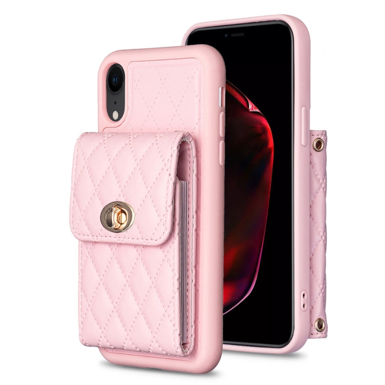 Caja de Teléfono para iPhone Xr Cuero Rombal con Hebilla de Metal Vertical (Rosa)