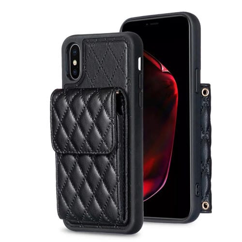Estuche de Teléfono iPhone X / Xs Cuero Rómbico con Billetera Vertical (Negro)