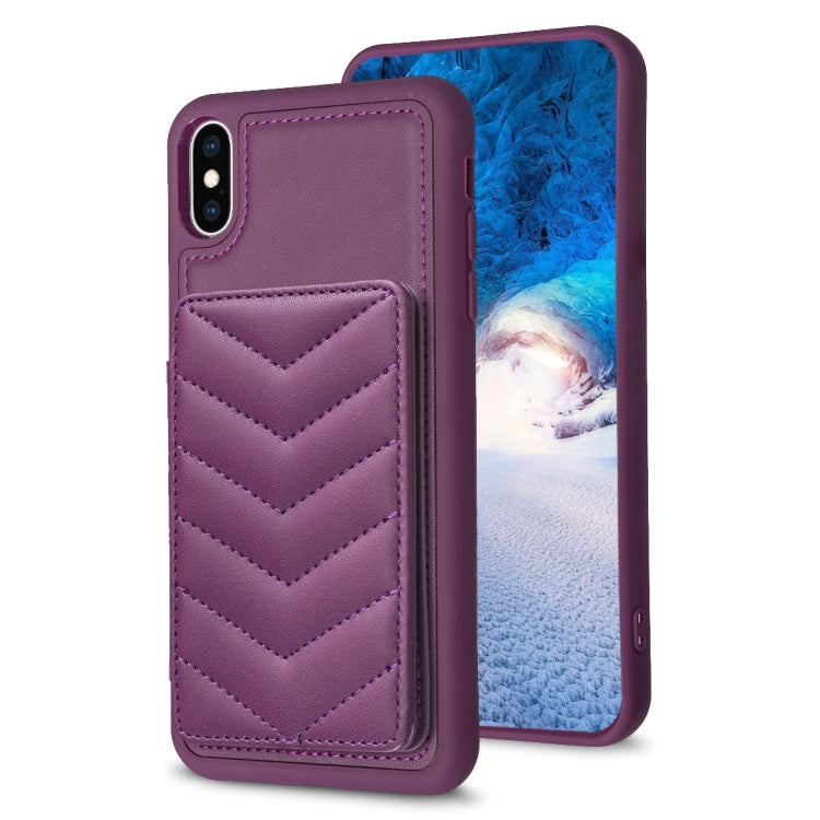 Funda para teléfono Bf26 iPhone Xs Max Wave Pattern Card Bag Holder (Morado oscuro)