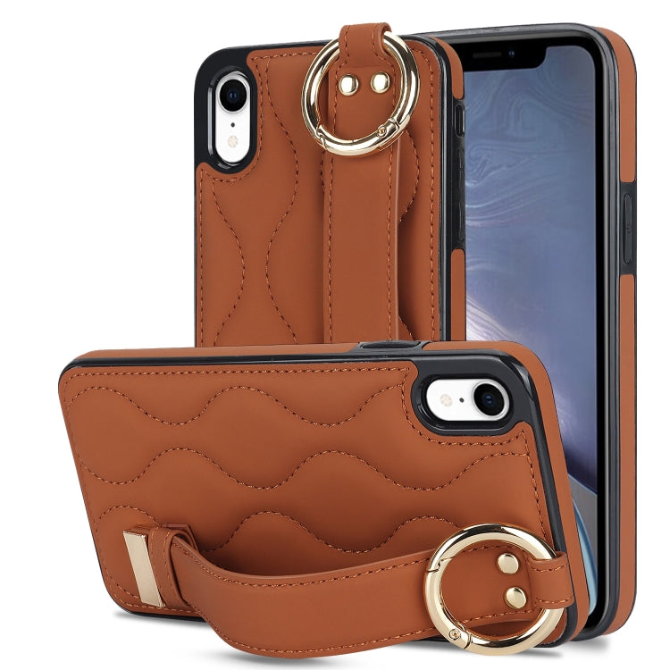 Funda para iPhone Xr Antideslizante de PU con Anillo y Muñequera (Marrón)