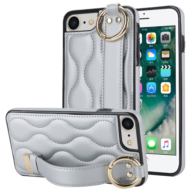Funda para Teléfono iPhone 7 Cobertura Completa Antideslizante Anillo Pu con Muñequera (Plata)