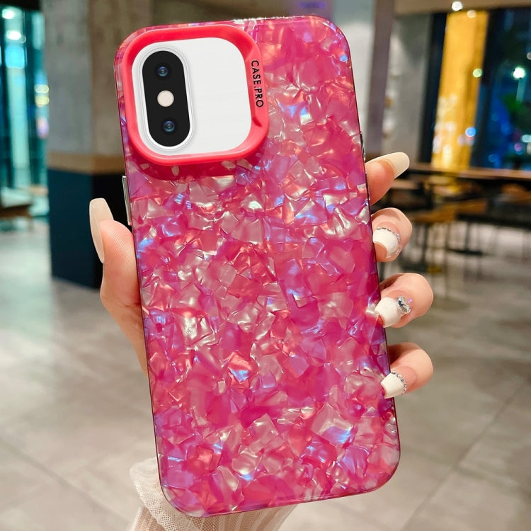 Funda TPU Imd Shell Texture para iPhone Xr + Caja de Acrílico (Rosa Roja)