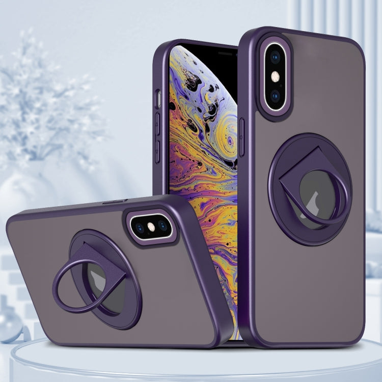 Funda para Teléfono iPhone Xs Max Anillo Giratorio con Soporte Magnético (Púrpura)
