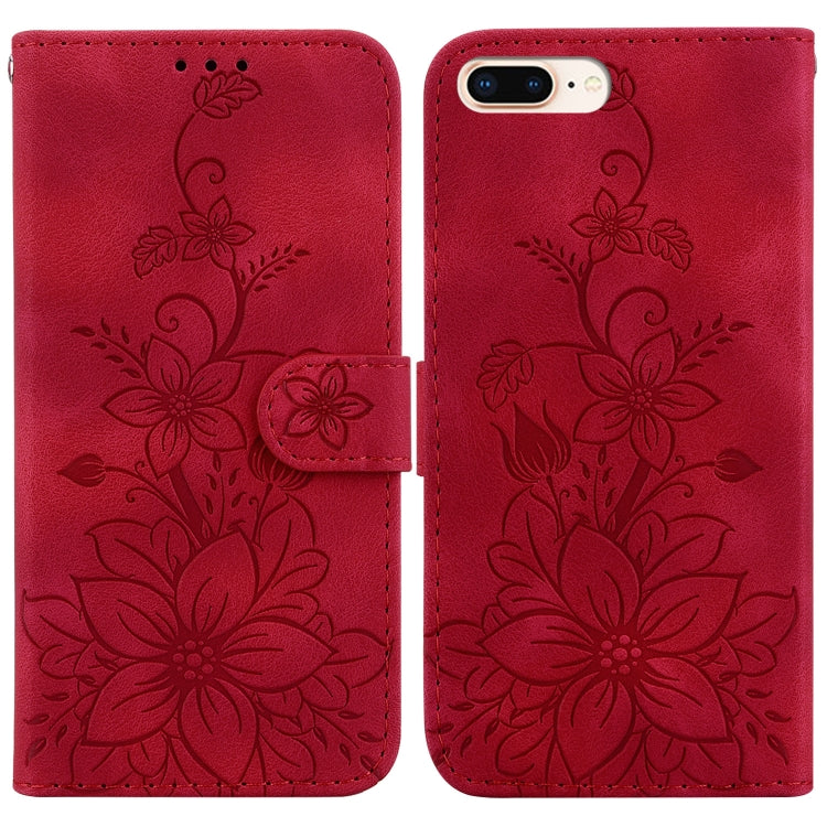 Estuche para Teléfono iPhone 8 Plus 7 Plus Cuero En Relieve Lily (Rojo)