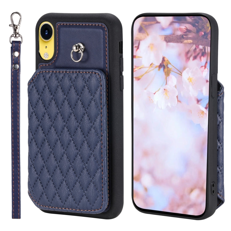 Funda para Teléfono iPhone Xr Grid Texture Card Bag con Cordón (Azul)
