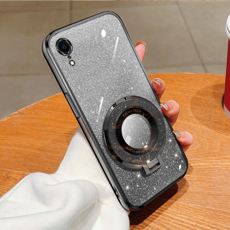 Funda de Teléfono TPU con Soporte Redondo y Purpurina Degradada para iPhone Xr (Plateada)