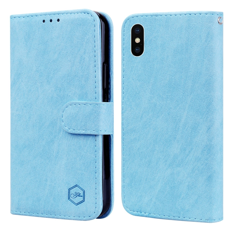 Funda para Teléfono iPhone X / Xs PU + TPU Sensación Piel Cuero Aceitoso (Azul Claro)