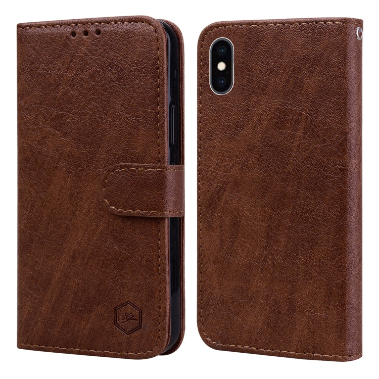 Funda para Teléfono iPhone Xs Max Skin Feeling Oil Textura de Cuero Pu + TPU (Marrón)