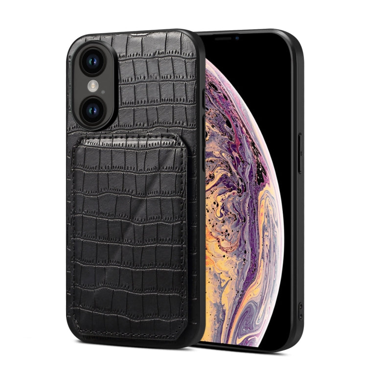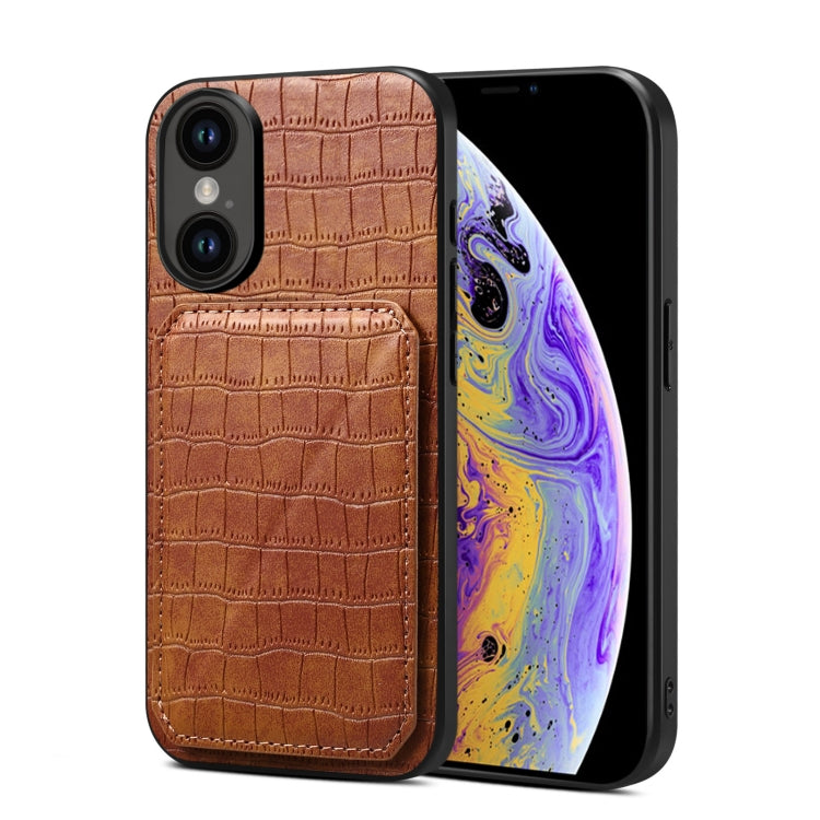 Funda Trasera para iPhone Xs / X de Piel de Cocodrilo de Imitación con Soporte (Marrón)