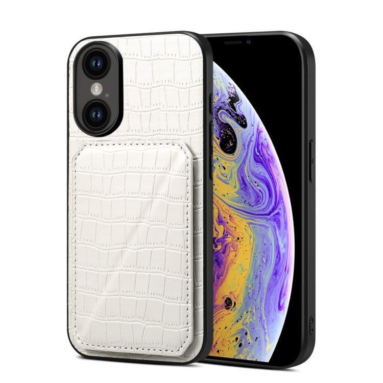 Funda Trasera para Teléfono iPhone Xs / X Piel de Cocodrilo de Imitación con Soporte (Blanco)