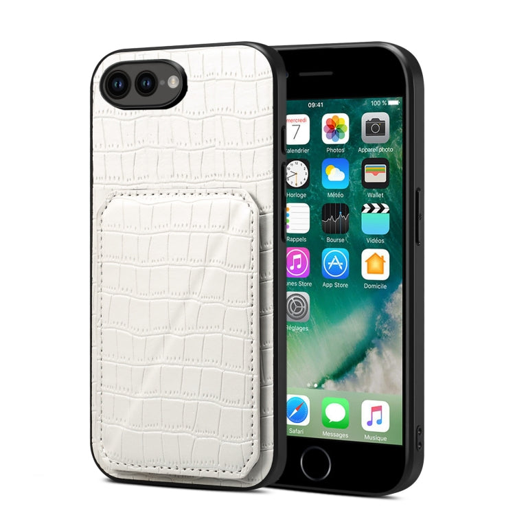 Funda Trasera para iPhone 8 Plus/7 Plus piel de cocodrilo de imitación con soporte (Blanco)